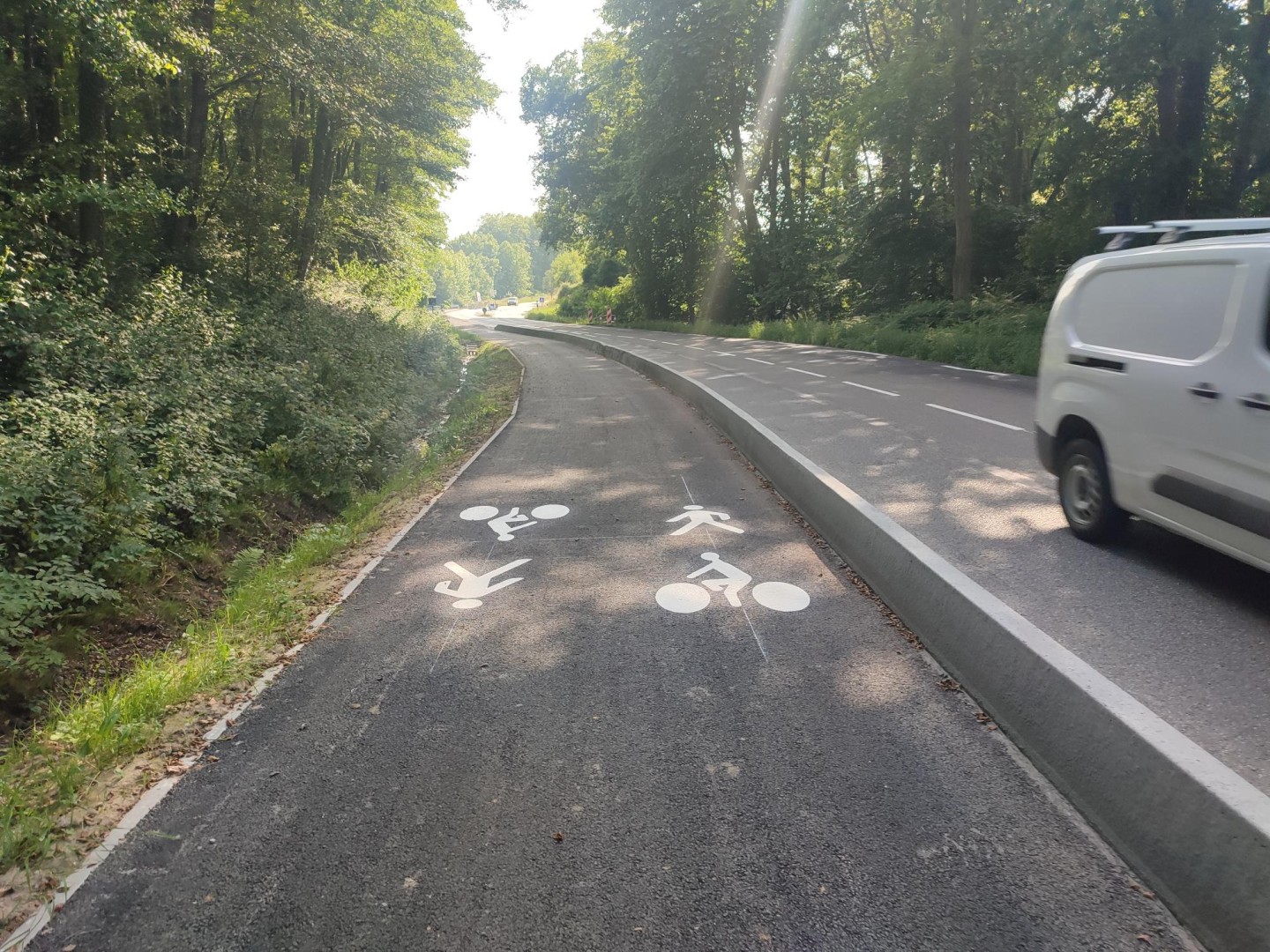 - Les bandes latérales sont conçues spécifiquement pour les vélos : elles assurent un espace sécurisé de circulation.