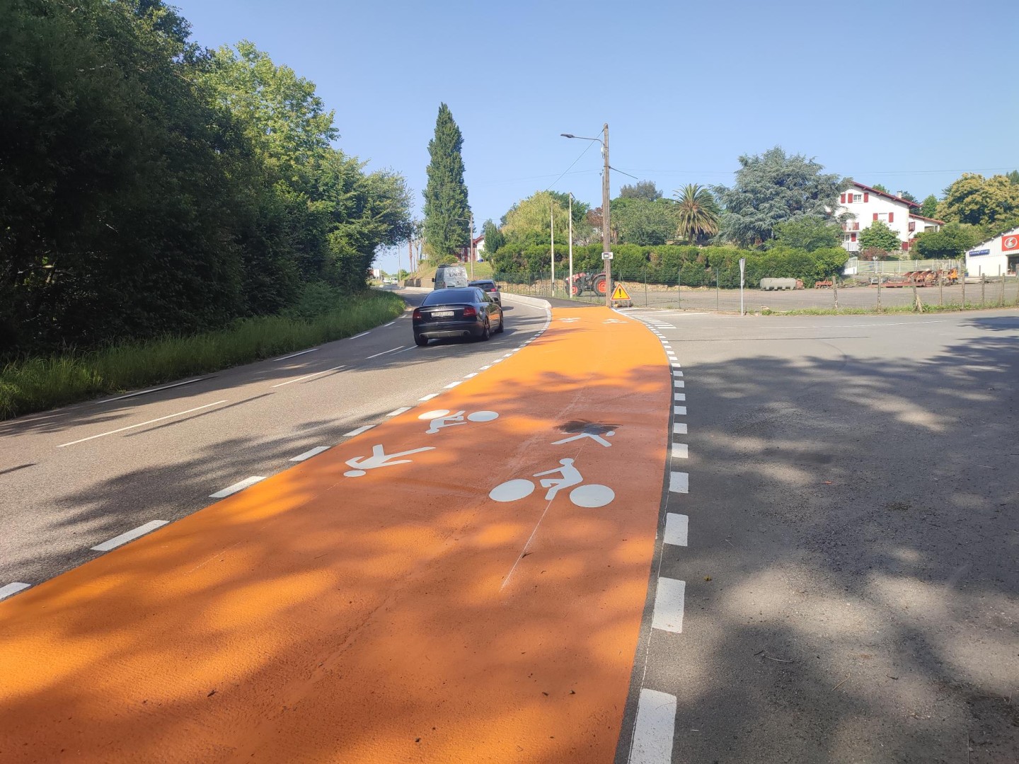 L'aménagement en 2025 d'une piste cyclable sur la RD 936 dans la partie comprise entre l’allée de Panfilia et l’alimentation VIVAL, est venu répondre au besoin d'apporter une solution rassurante et sécurisante sur un axe majeur de déplacement (6900 véhicules/jour) aux cyclistes, ainsi qu’aux piétons et coureurs, permettant par la même occasion de sécuriser la connexion piétonne et cycliste des résidences ALDAPA et OYANA au centre bourg via la voie de Panfilia.